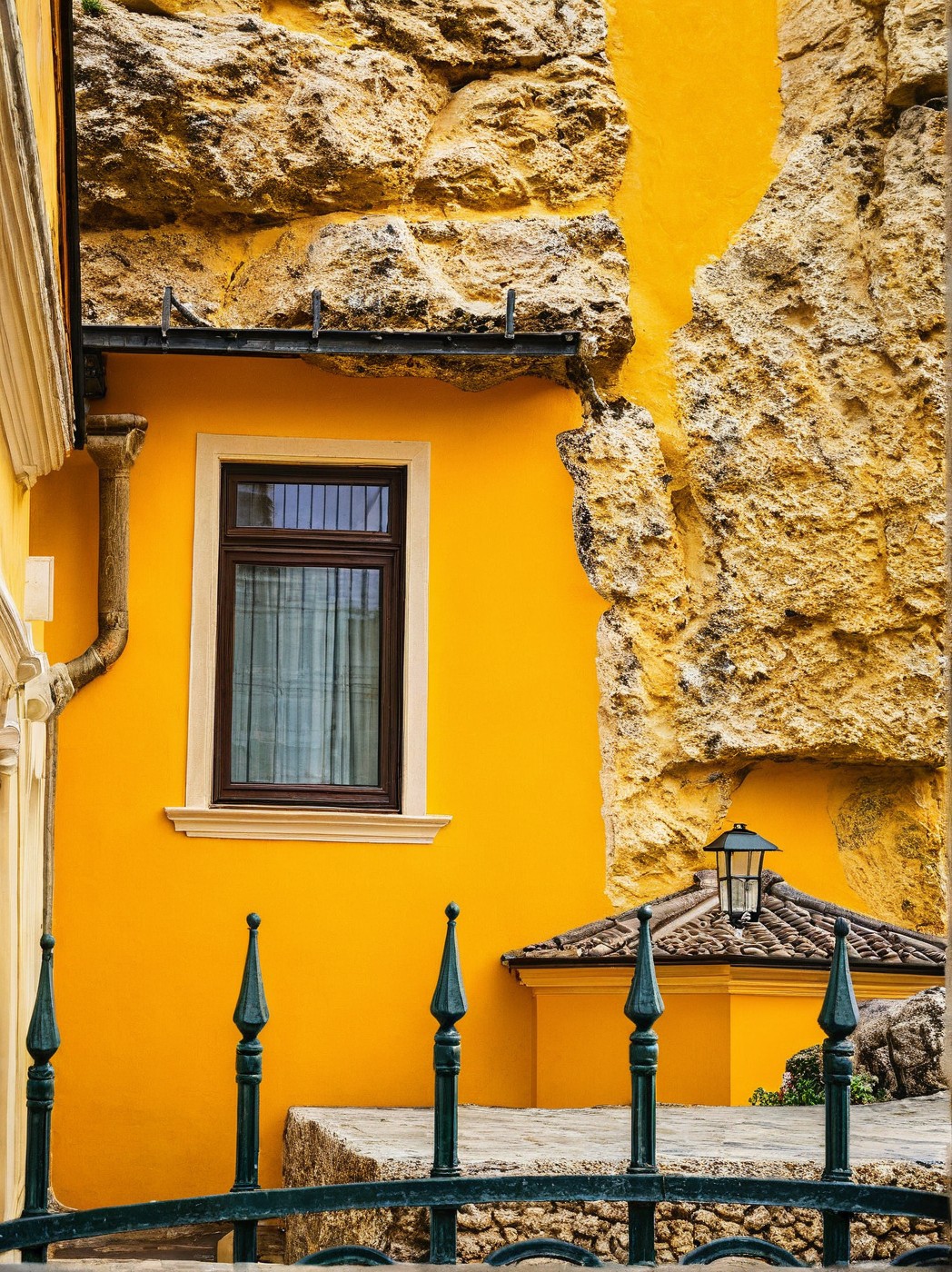 A high-resolution photograph of Building, , Glass wall in big rock