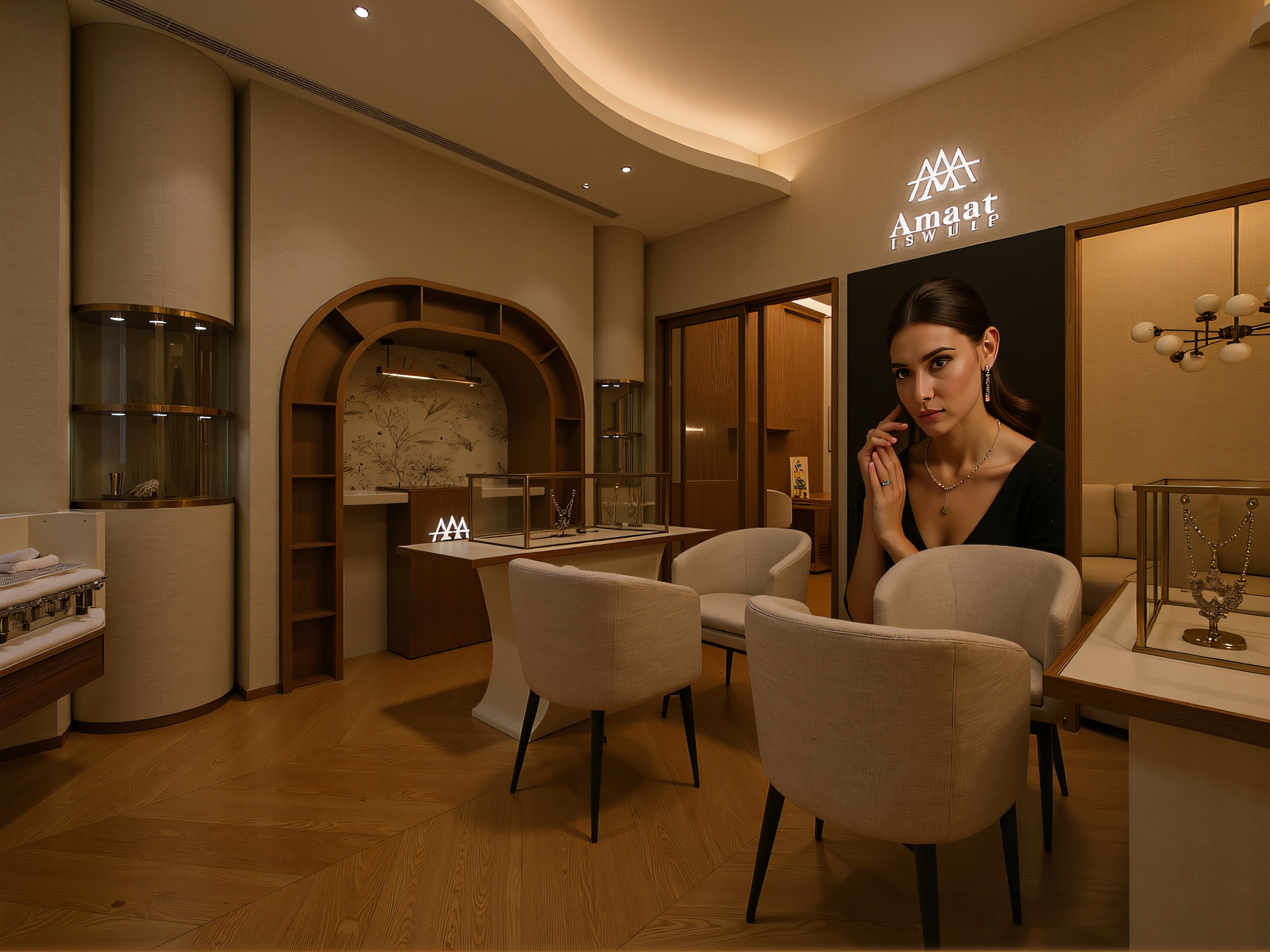 Elevate your interior space with ArchiVinci's advanced AI rendering. This modern interior design focuses on creating a bright and inviting atmosphere, enhanced by strategic lighting solutions. The generated 3D model showcases improved illumination, highlighting key features and creating a sophisticated ambiance. Specific attention is given to the integration of glass display cases, designed to elegantly showcase jewelry. This service is perfect for interior designers and homeowners looking to visualize highly detailed and well-lit room concepts, transforming spaces with photorealistic accuracy and customizable lighting effects. Explore how enhanced lighting and display elements can redefine your interior design projects.