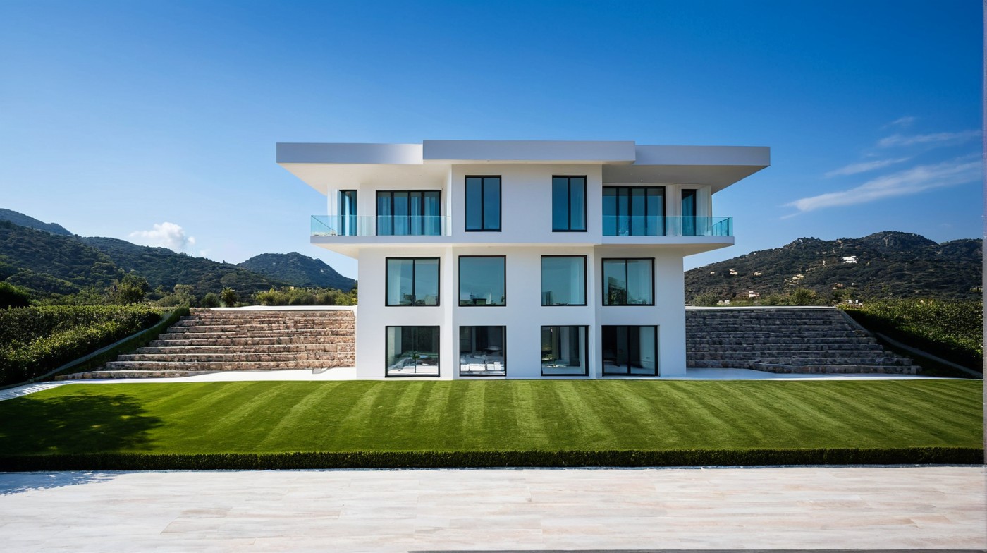 Generate a high-resolution, photorealistic render of a modern luxury villa exterior with ArchiVinci. This design emphasizes contemporary minimalist architecture, characterized by clean lines and seamless integration with its environment. Floor-to-ceiling glass windows offer unobstructed views and flood the interior with soft, natural daylight, enhancing the sense of space and luxury. The ultra-realistic rendering captures fine details, showcasing natural textures and sophisticated design elements. With cinematic composition and 8K resolution, this visualization provides an unparalleled look at modern villa aesthetics. Perfect for architects, designers, and developers seeking to showcase cutting-edge exterior designs with exceptional clarity and realism.