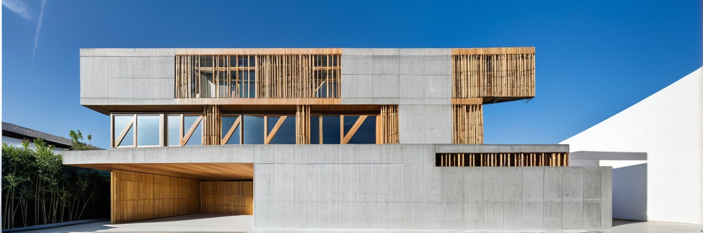 School, primary school height 20 feet double floors use bamboo and timber and concrete user grey and off white colours