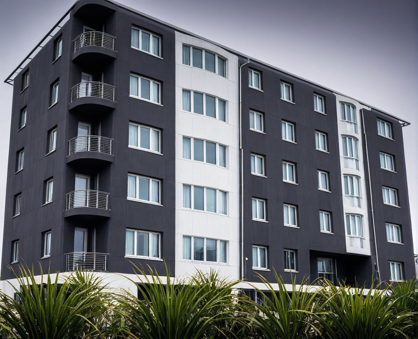 Apartment Building, Paint the building in silver, dark gray and white colors.