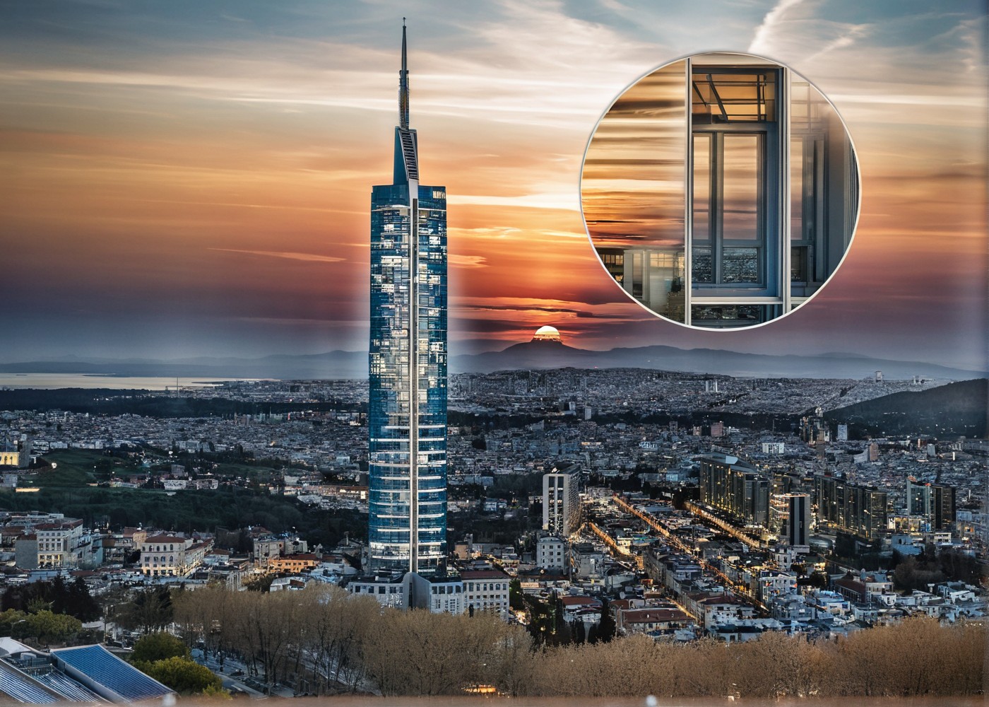 Keep the building's windows exactly the same. I want the image to look photorealistic with a sunset background and good lighting.