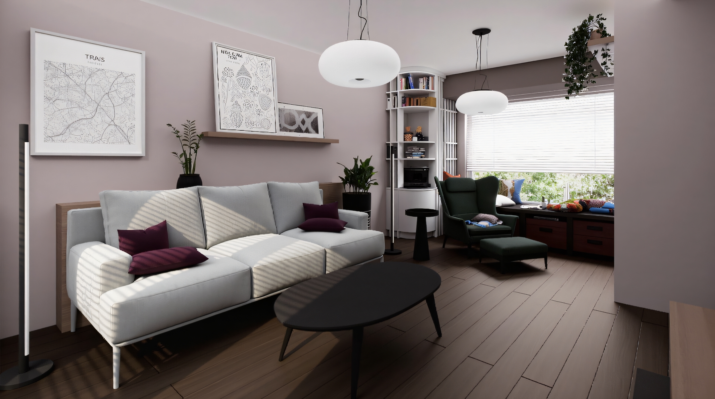 Instantly update your living space with ArchiVinci's 'modRoom' feature. This example demonstrates recoloring a prominent white bookcase in a living room to a sophisticated light maple wood texture. The goal was to seamlessly integrate it with existing furniture, achieving a cohesive and warm aesthetic. Our AI precisely applies the desired wood grain and color, enhancing the room's overall style without extensive renovation. Ideal for interior designers and homeowners looking for rapid, realistic modifications. Explore how subtle changes can dramatically impact your interior design. ArchiVinci makes visualizing new material palettes effortless, providing high-quality results for inspiration or client presentations.